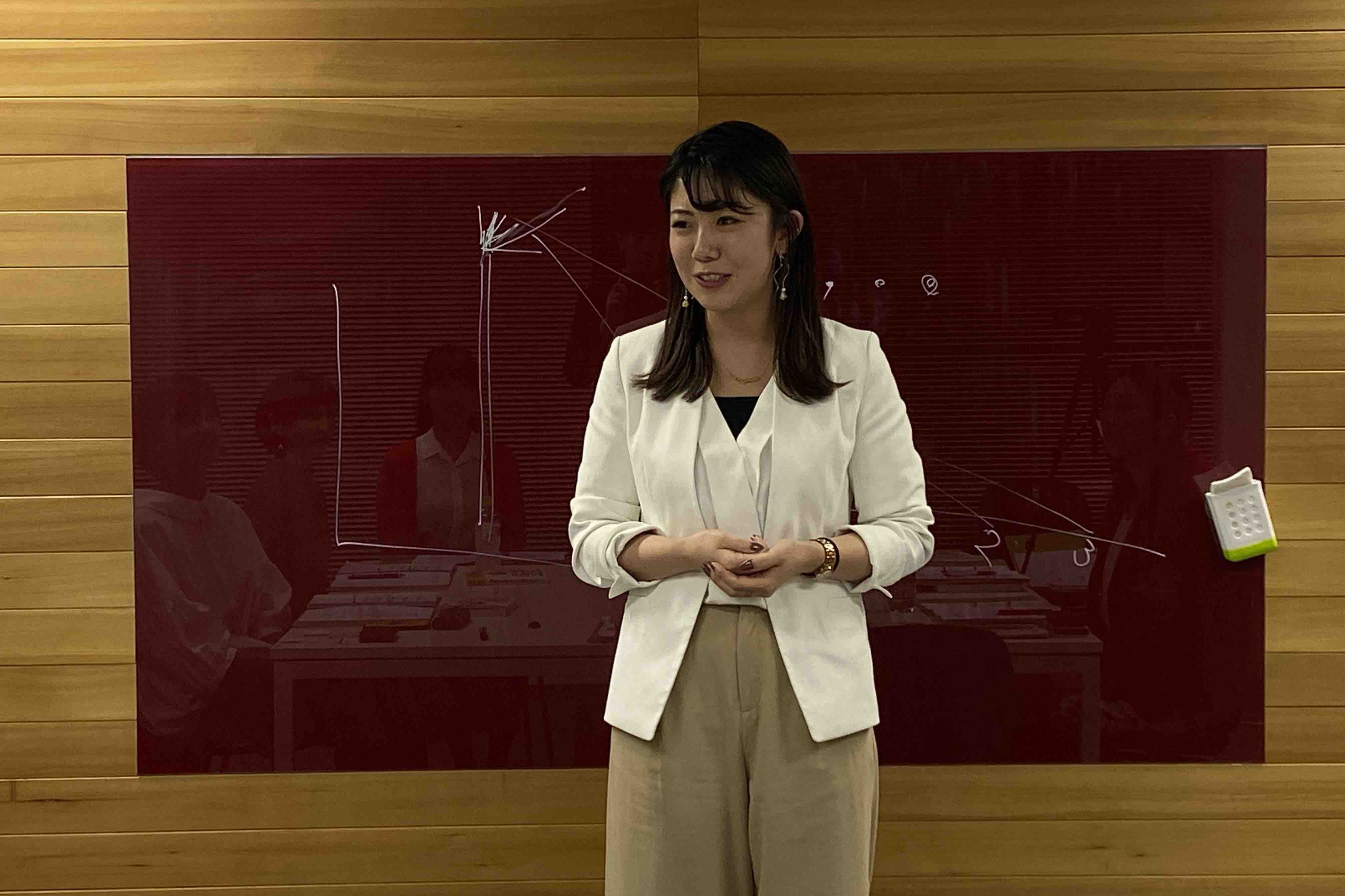 1日目の講義では、“なぜ有名になりたいのか?”という点を掘り下げて、広報活動を通してメディア掲載を目指す目的は何か、という点を中心に講義しました。またメディア掲載は広報活動によって達成するものではなく、社員品質や商品・サービスの品質が高まることと比例して達成していくものであると強調し、「広報=経営」の本質を伝えました。講義の最後にはショートスピーチを行い、学びの振りと今後の行動目標を発表していただきました。